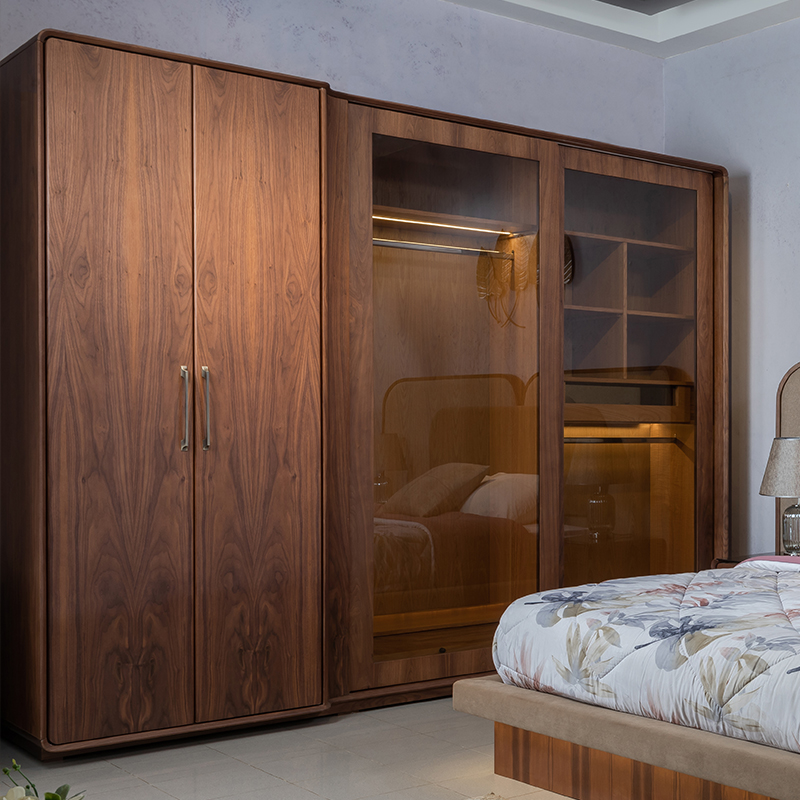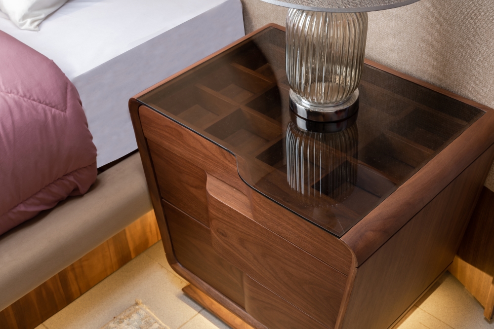 Elevate your bedroom with timeless elegance - red oak wood frames enriched with natural Turkish walnut veneer adorn a set comprising a 180 cm bed, 2 nightstands, a dressing table, and a 280 cm wardrobe, offering a luxurious blend of craftsmanship and sophistication.