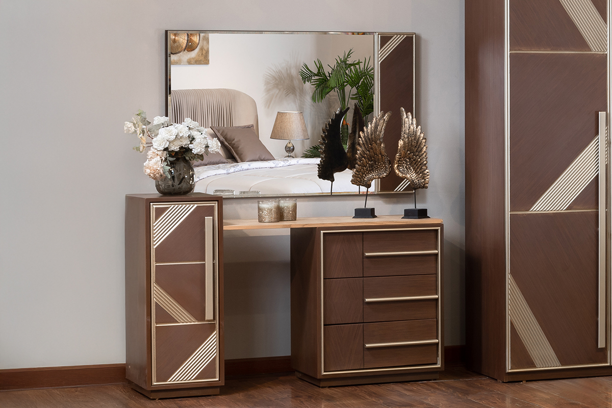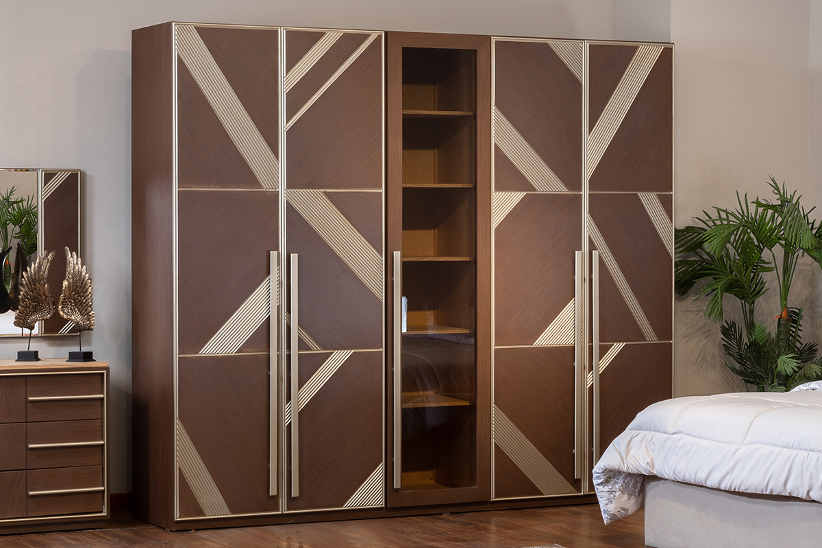 The Valin Bedroom Set is crafted to reflect modern elegance with functional design. Featuring a bed, optional commodes, a spacious wardrobe, and dresser with mirror, this set offers both comfort and practicality for your bedroom.