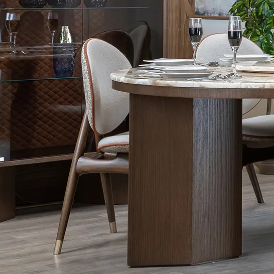 The Temraza Dining Set is a luxurious blend of elegance and functionality. With its grand table, six comfortable chairs, a spacious buffet, and decorative mirrors, this set is designed to make every dining occasion special. It is perfect for those who value refined design and long-lasting quality in their home.