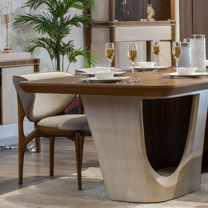 The Wonder Dining Set brings timeless elegance and superior craftsmanship into your home. Featuring a spacious table, six finely upholstered chairs, a refined buffet, and two mirrors, this set is designed to create a warm and inviting dining atmosphere—ideal for everyday use and memorable gatherings.