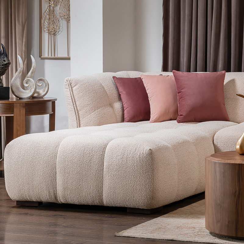The Billagio L-Shape Sofa blends a clean modern silhouette with generous seating. Its 3.20 × 1.95 m layout is ideal for contemporary living rooms and daily comfort.