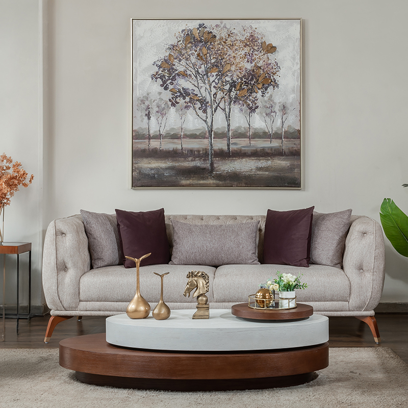 Red oak wood frames form the foundation for this ensemble, comprising a 3-seater sofa, 2-seater sofa, and 1 armchair, seamlessly blending natural elegance with comfortable seating.