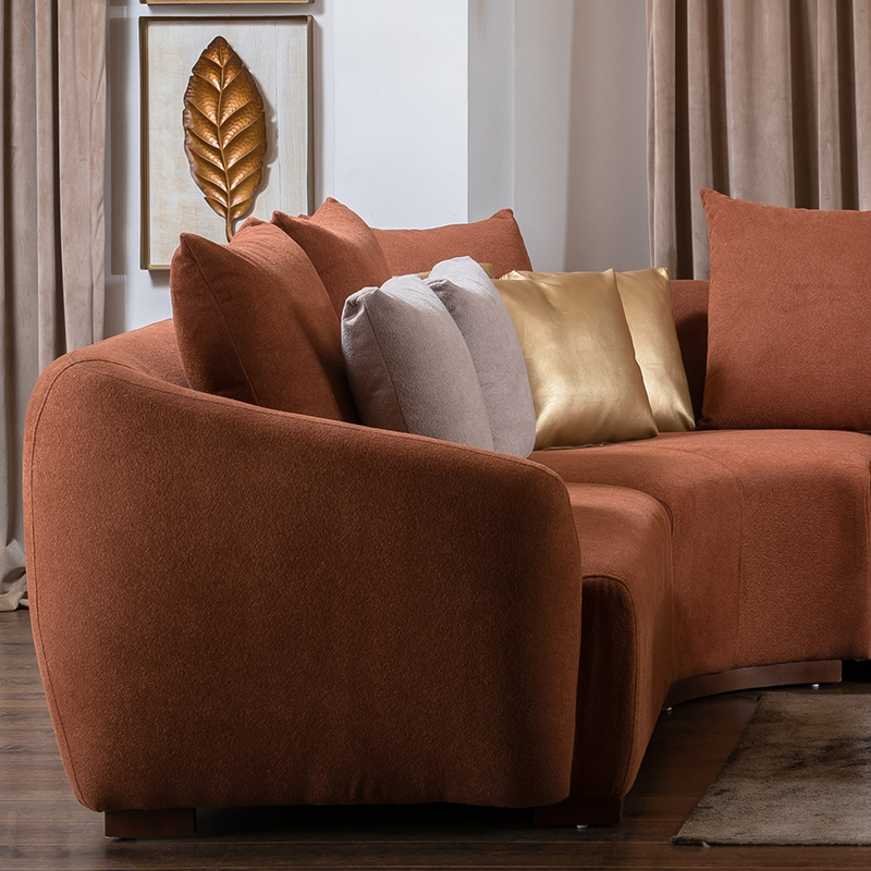 The Vina L-Shape Sofa pairs generous seating with a clean modern look. Its 3.60 × 2.60 m layout suits wide living spaces, and you can extend it with an extra meter if needed.